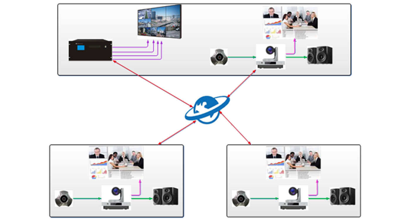 金融庞大体系设有的大量分行和营业部,由于无法面对面沟通,很多重要资料,很难确切传达和讲解,网络视频会议的分布式系统结构需要实现从员工桌面讨论、电话会议、到会议室正式会议等各种规模的应用。