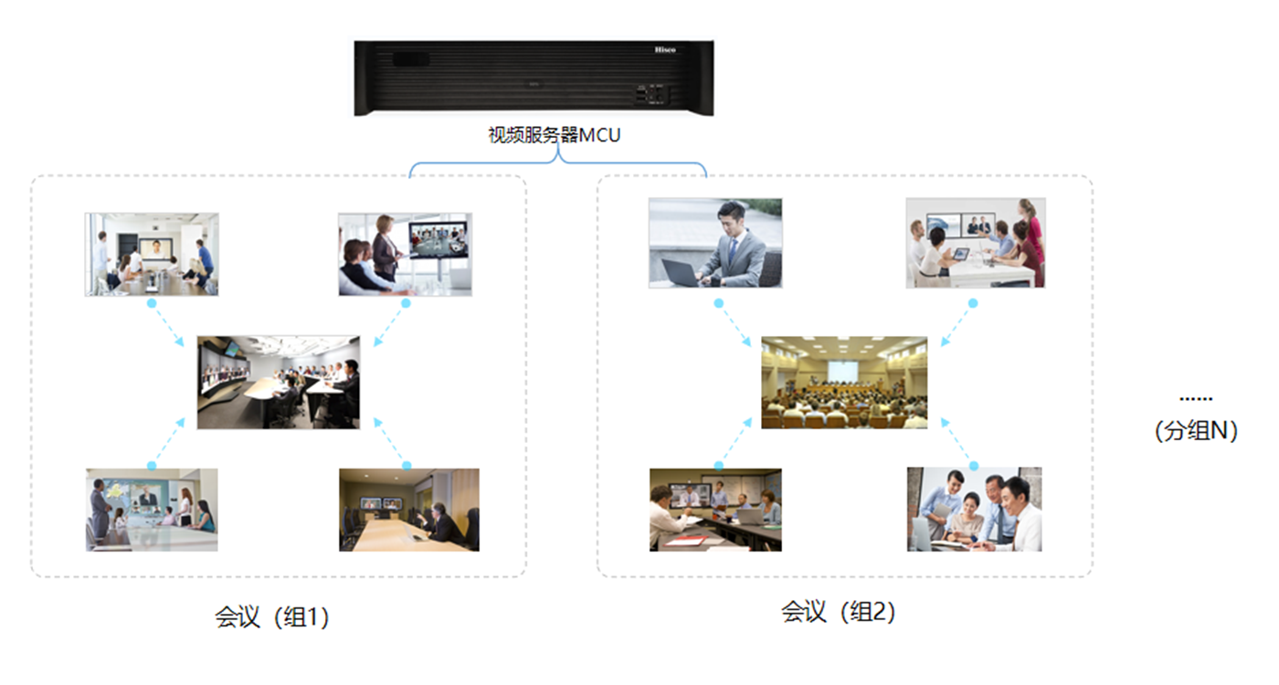 可同时召开多组不同的会议,且各个会议之间彼此独立。允许多个管理员同时登陆管理、配置自己的会议,各个会议相互独立。此应用适用于远程工作安排和远程工作讨论,如重大活动中的重大问题的处理,各部门领导就可以通过本系统进行远程汇报、交流、处理等。分组会议是金融行业常用的一项视频会议的功能应用。