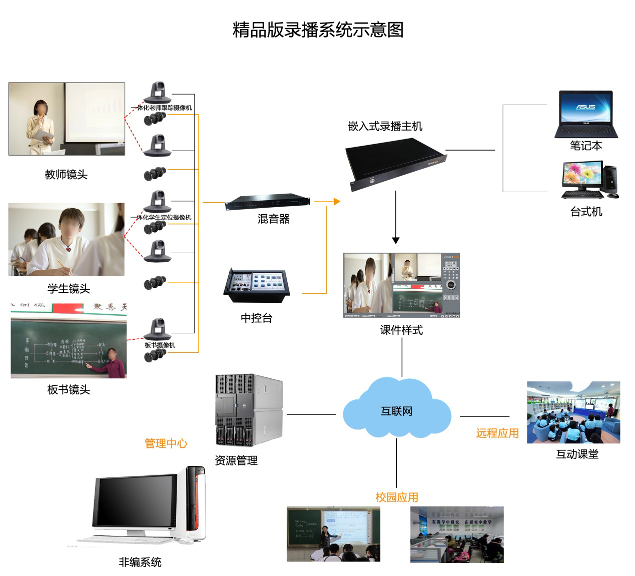 1. 多路信号采集:录播系统应配备多路音视频采集系统和VGA采编系统,以便于捕捉到教师授课、教师板书、学生答问、交流互动、课件展示、计算机画面等多元化的教学场景与教学元素。