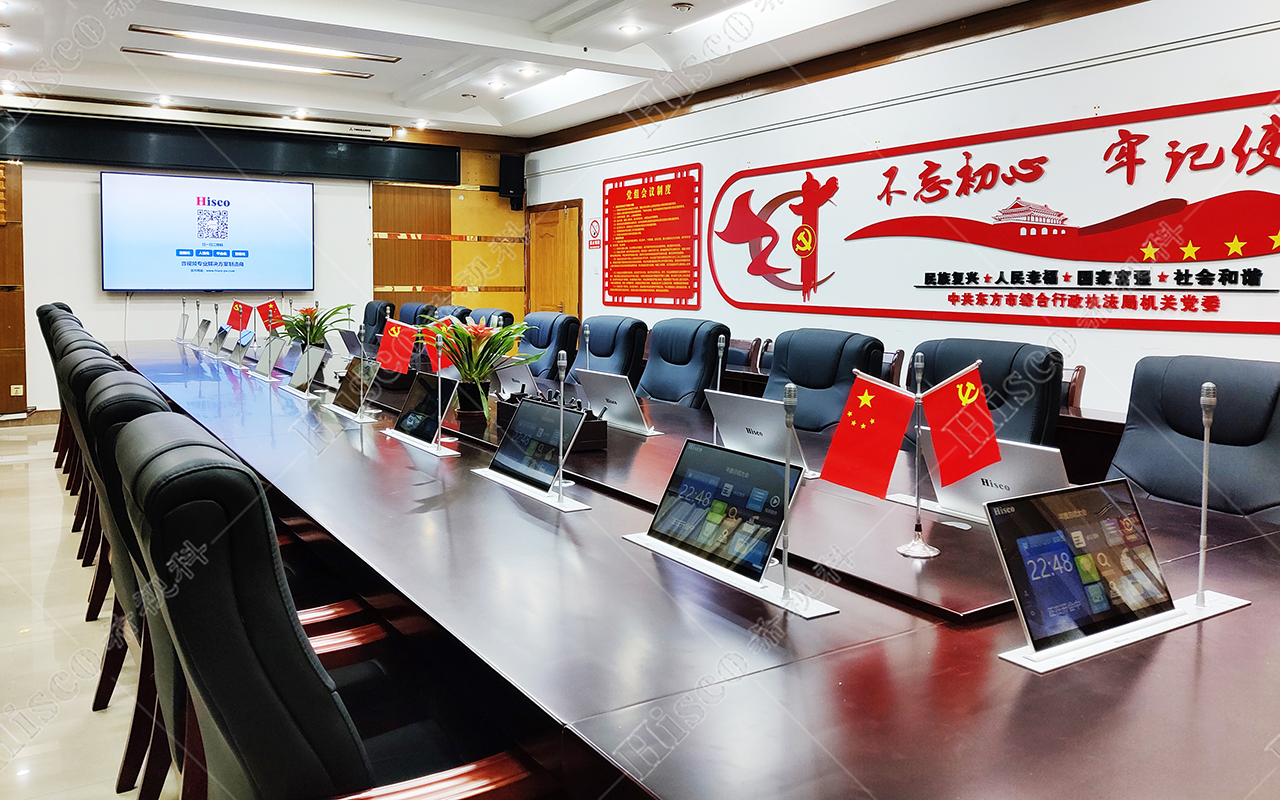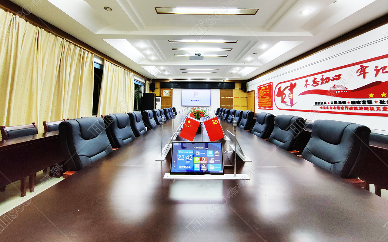东方市综合行政执法局是东方市人民政府工作部门,本次项目为政府机关会议室会议系统建设,主要设计了数字会议系统、扩声系统、显示系统、集中控制系统、矩阵系统、无纸化升降等。