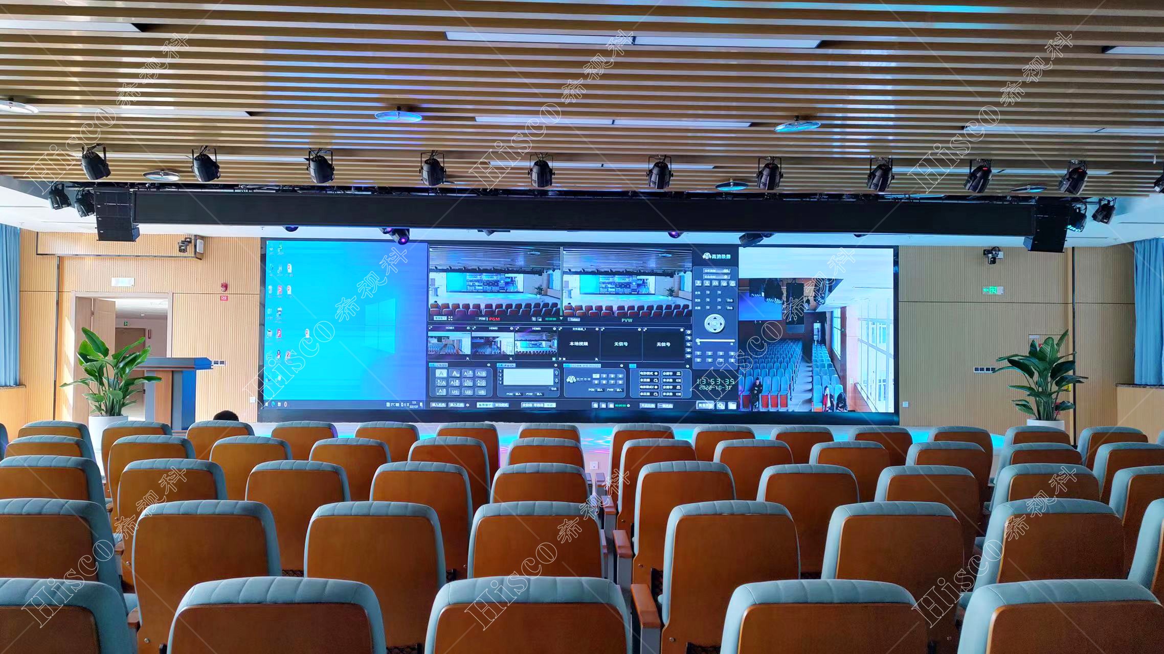 本报告厅是一个中大型报告厅,主要为举办学术会议、演讲、公共大课培训及各种文艺演出。根据其建筑结构特点和使用功能及国家相关标准,根据面积和观看距离选择合适的LED大屏,展现整个舞台的宏伟大气;扩声采用集中与扩散相结合的扩声方式,开会和报告时采用单声道集中扩声还原模式,所有音源都从主席台发出,声像的平衡、方位无倾斜,保证了下面观众听到的直达声响度和均匀度达到要求,让观众听的适宜和舒服。演出时采用左右立体声空间成像模式,直达声与辅助音箱的效果声相结合表演,传达表演意境,使得演员和观众之间产生一种无声的交流。