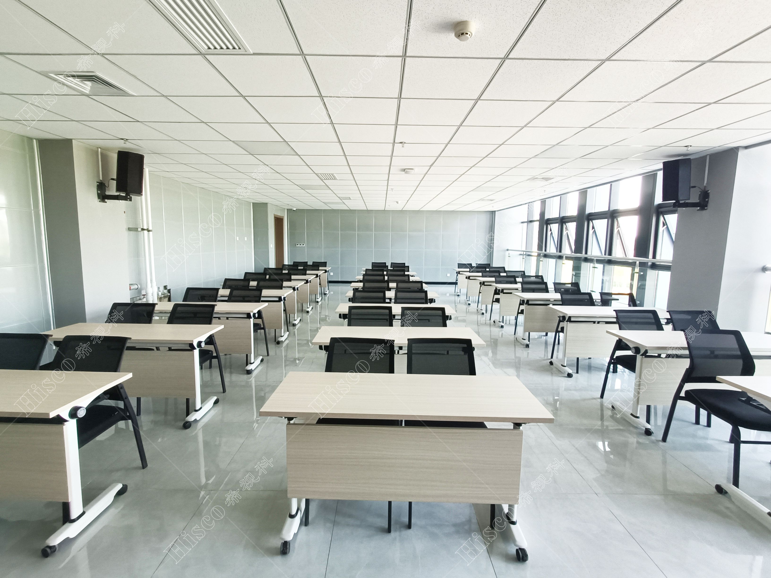 多功能培训教室主要用于银川市工人员工培训、学术交流、会讨或者是给少先队等机构进行培训使用等功能。培训无疑是市民文化提高,素质增强的重要手段。在显示系统的选型上,满足日常培训的PPT观看,视频会议显示等功能,配置2台75寸液晶电视。扩声是配置2只10寸的高音质全频音箱,声压可均匀覆盖,平均声压98dB。