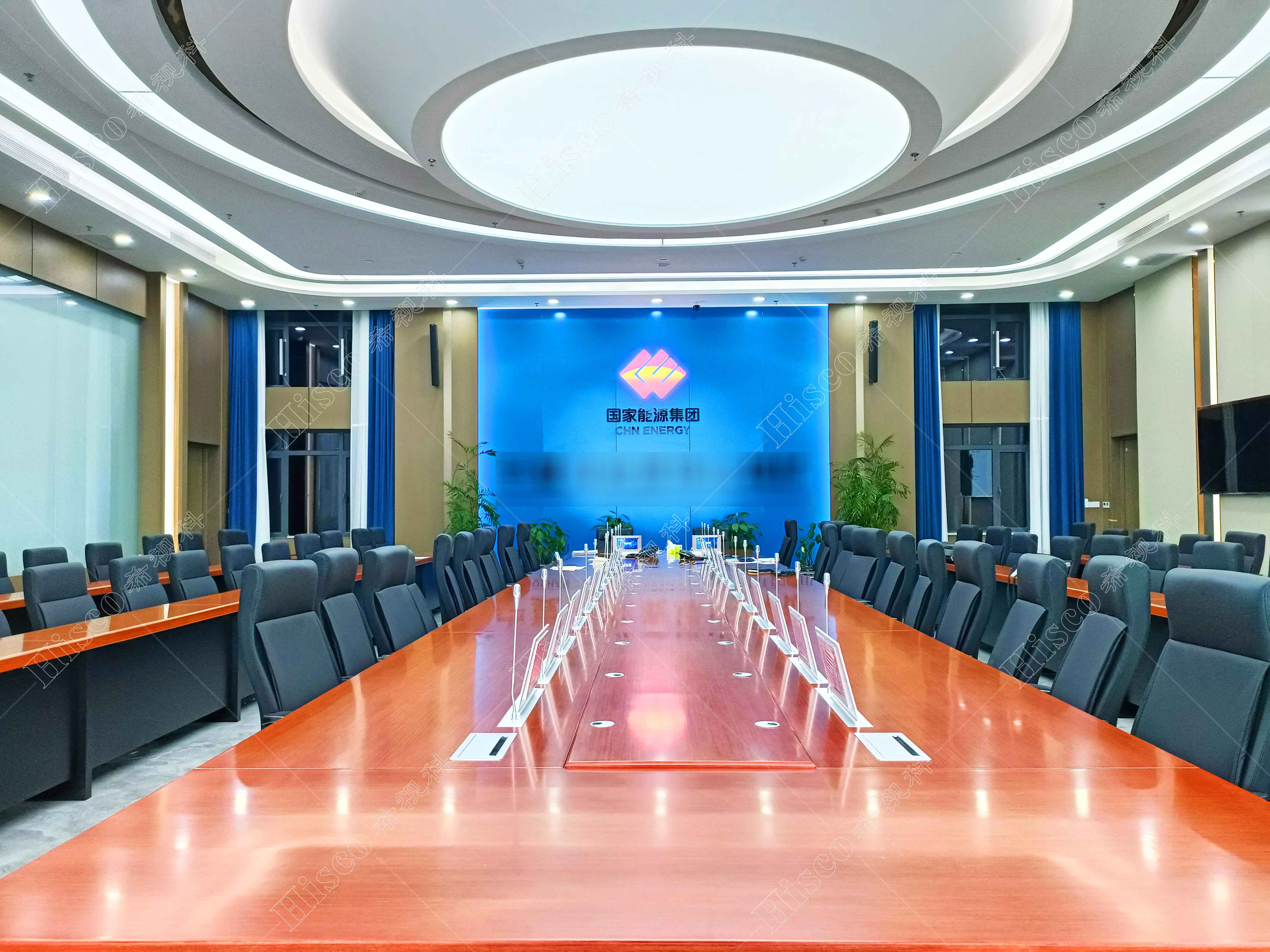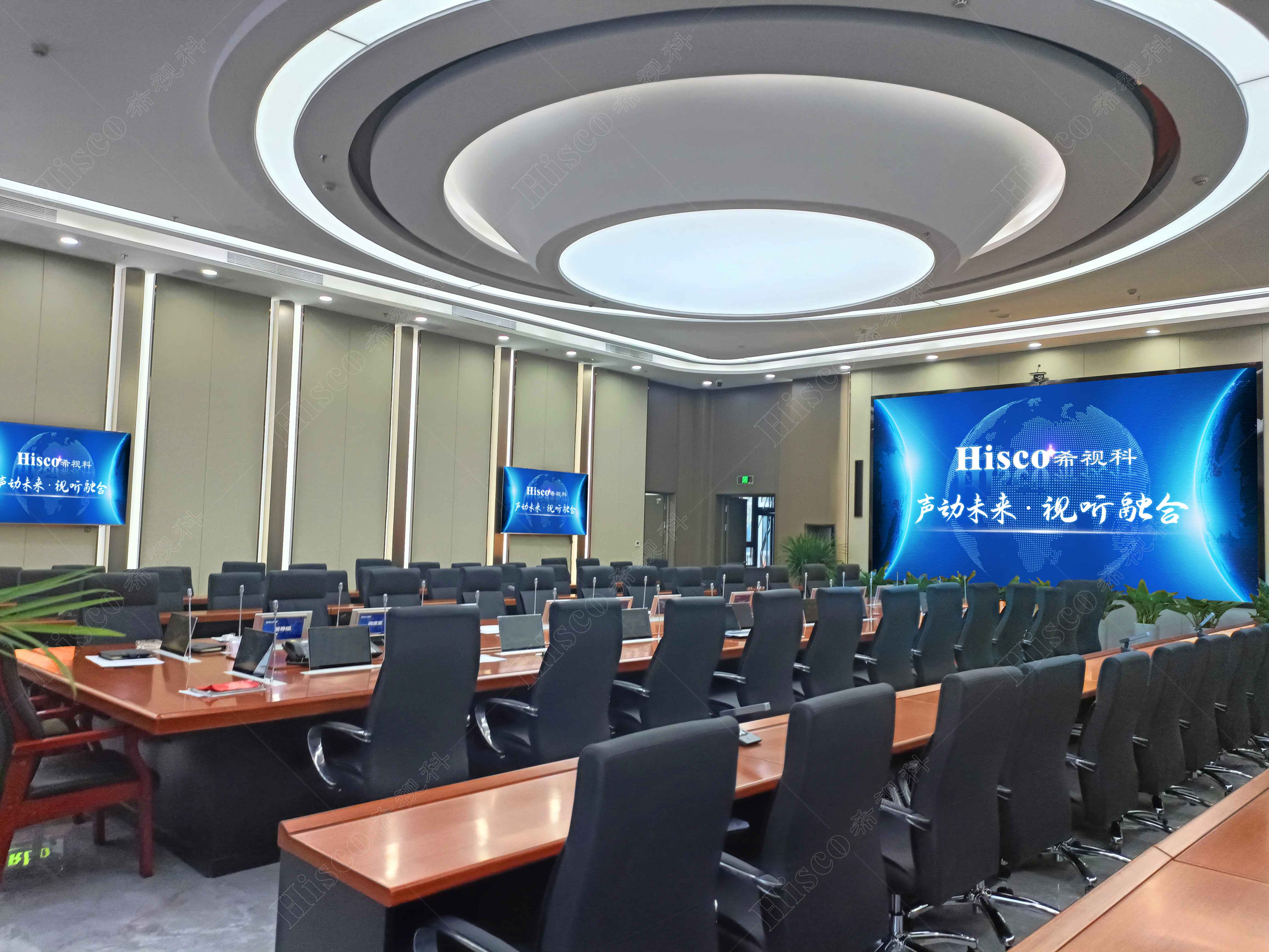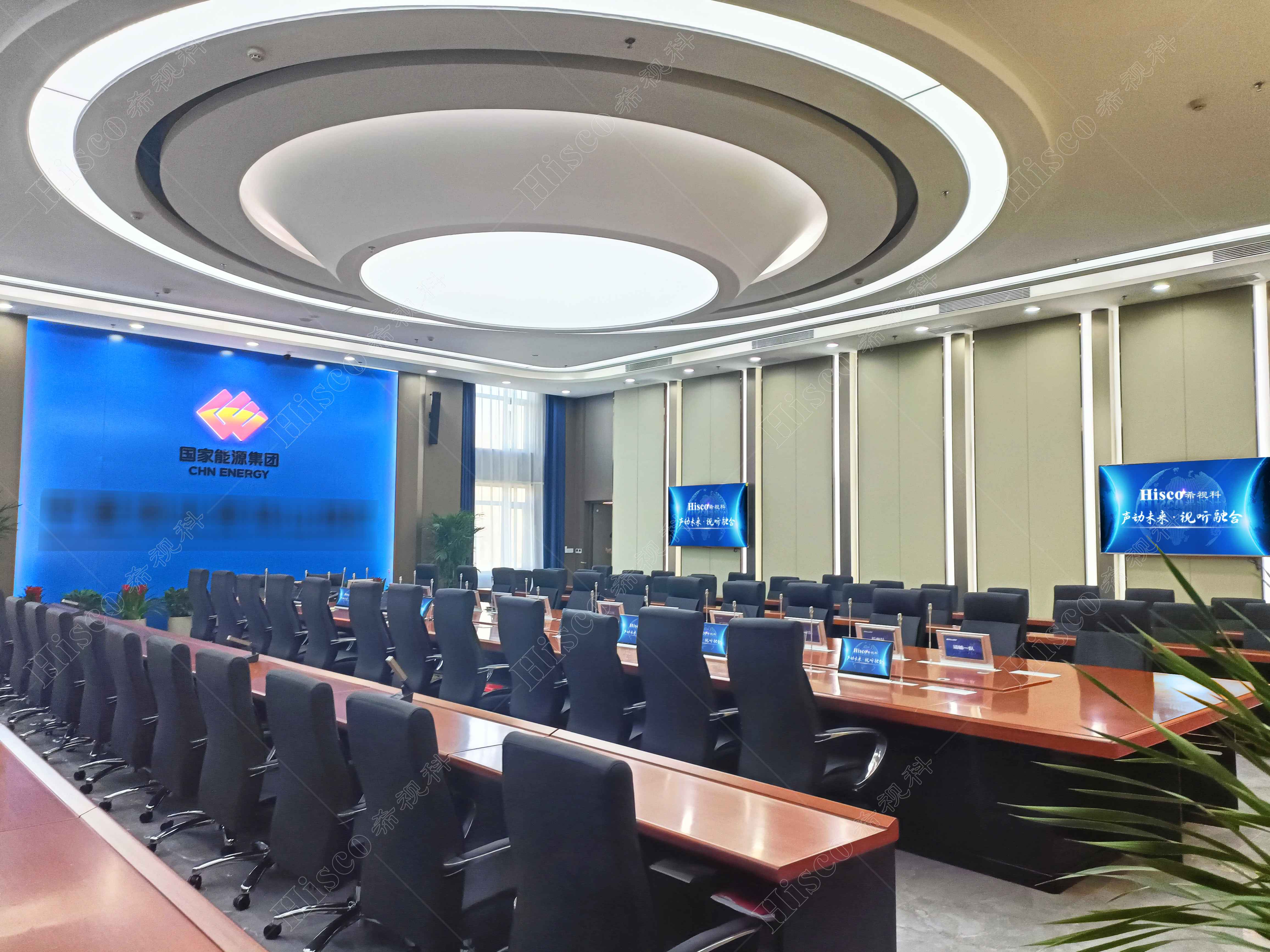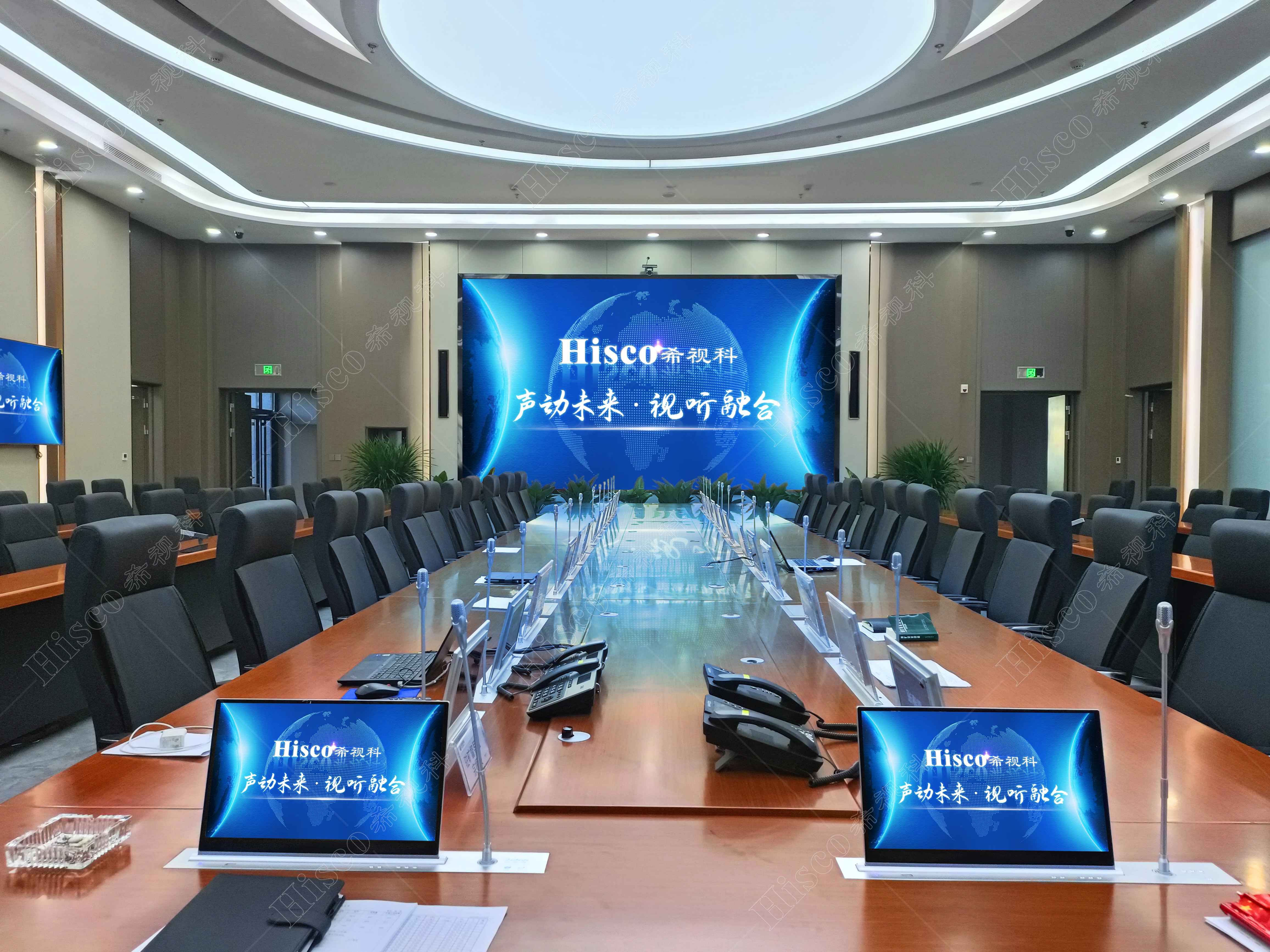 本次项目为企业集团会议室会议系统建设,主要设计了数字会议系统、扩声系统、显示系统、集中控制系统、矩阵系统、无纸化系统等。