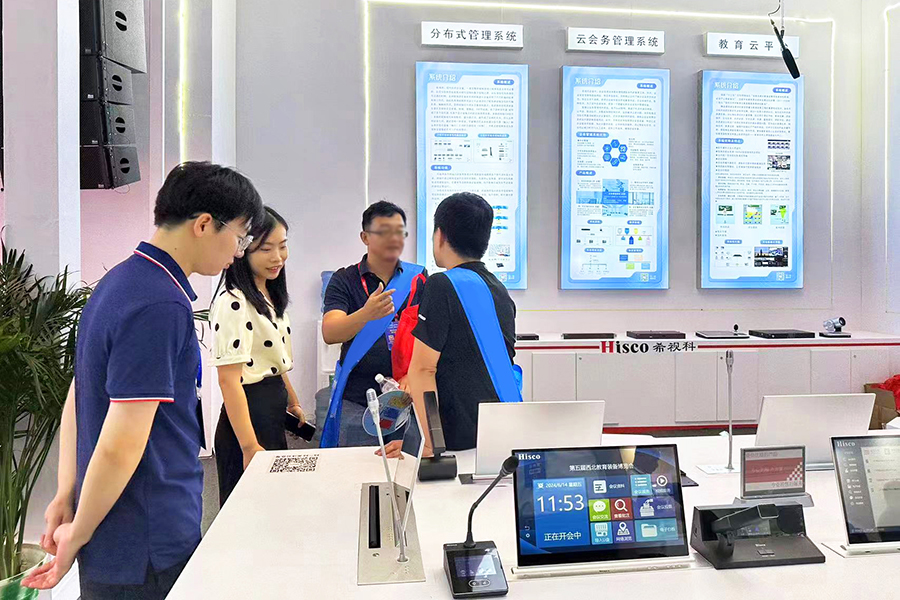 ● 通过展示这些尖端设备,希视科成功地向教育界证明了其在技术研发方面的领先地位。这些展品不仅涵盖了多种无纸化系统、多种双振膜话筒、智慧扩声系统、分布式系统、智能广播系统和舞台灯光系统等。这些设备的展出,不仅展示了希视科对教育行业未来趋势的深刻理解,还彰显了其持续创新的企业精神。