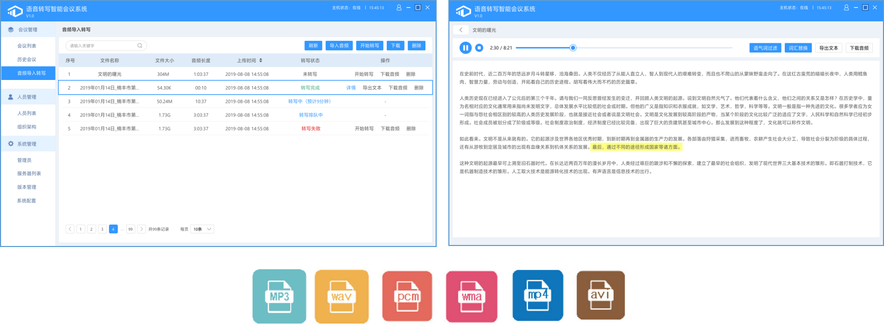 适用多种场景:适合办公会议、政府报告、新闻发布、学术讲座等各行业领域会议场景。非常适用政府企业、银行部门等无法使用公网语音识别服务的行业。