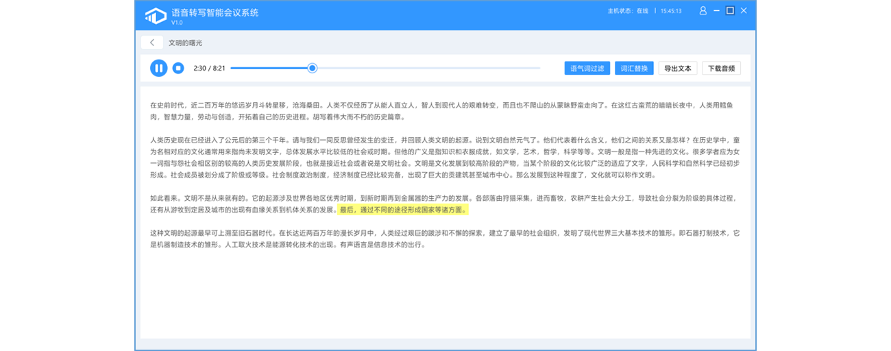 词汇替换:批量替换音频导入语音转写文本的内容,修正转写有误的文本。