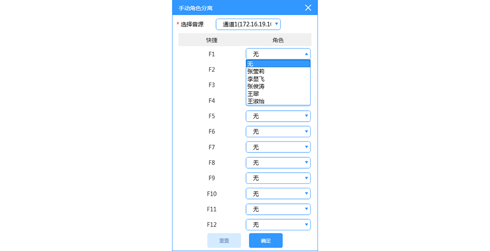 手动角色分离:绑定音源后,手动操作F1-F12可进行12个角色的手动分离。