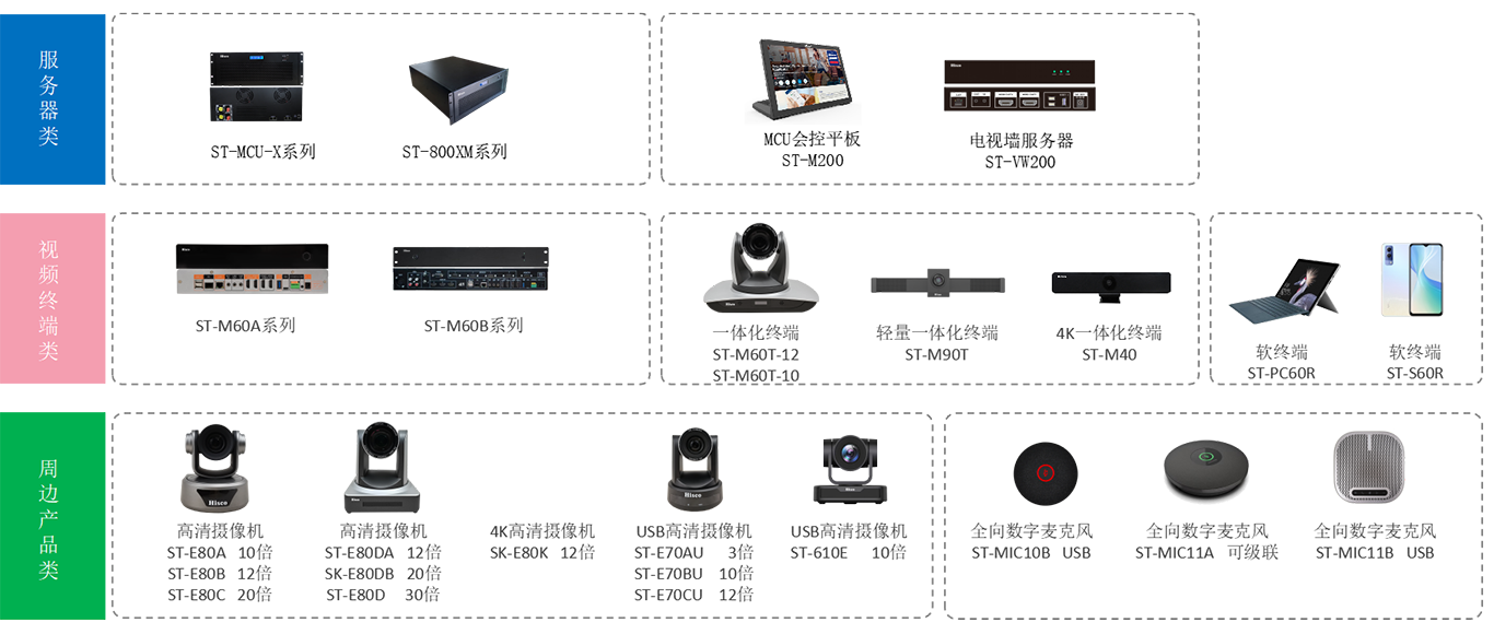 • 支持 H.323/SIP/RTSP/SCM协议,兼容主流视频会议品牌终端