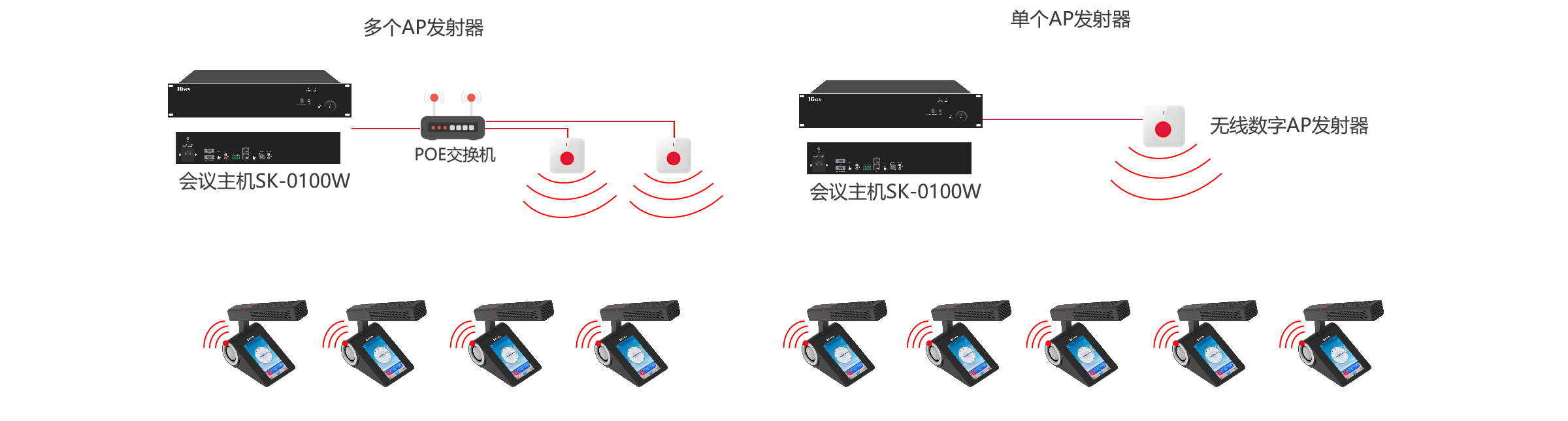 对于旧会议室改造、多功能厅、现场发布厅、临时会场等需要不破坏现场布置,能够快速方便搭建和移开会议系统的应用;传统有线手拉手会议很难甚至无法满足会场应用的要求。