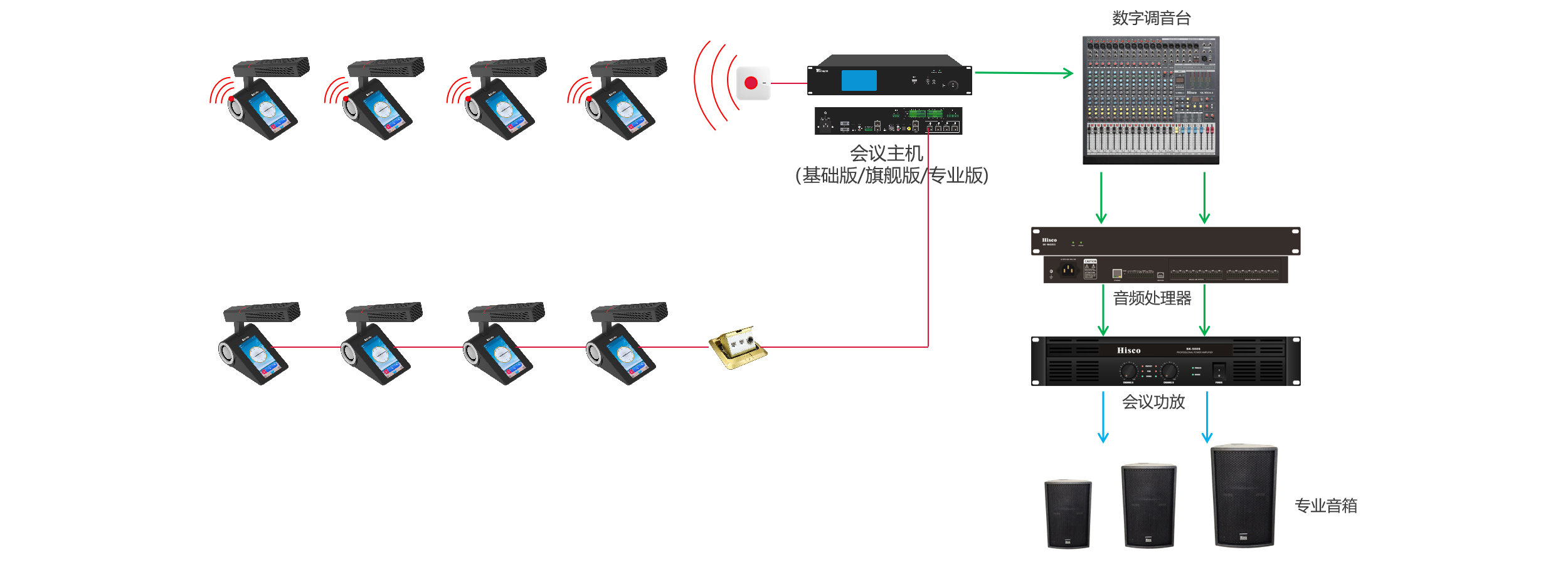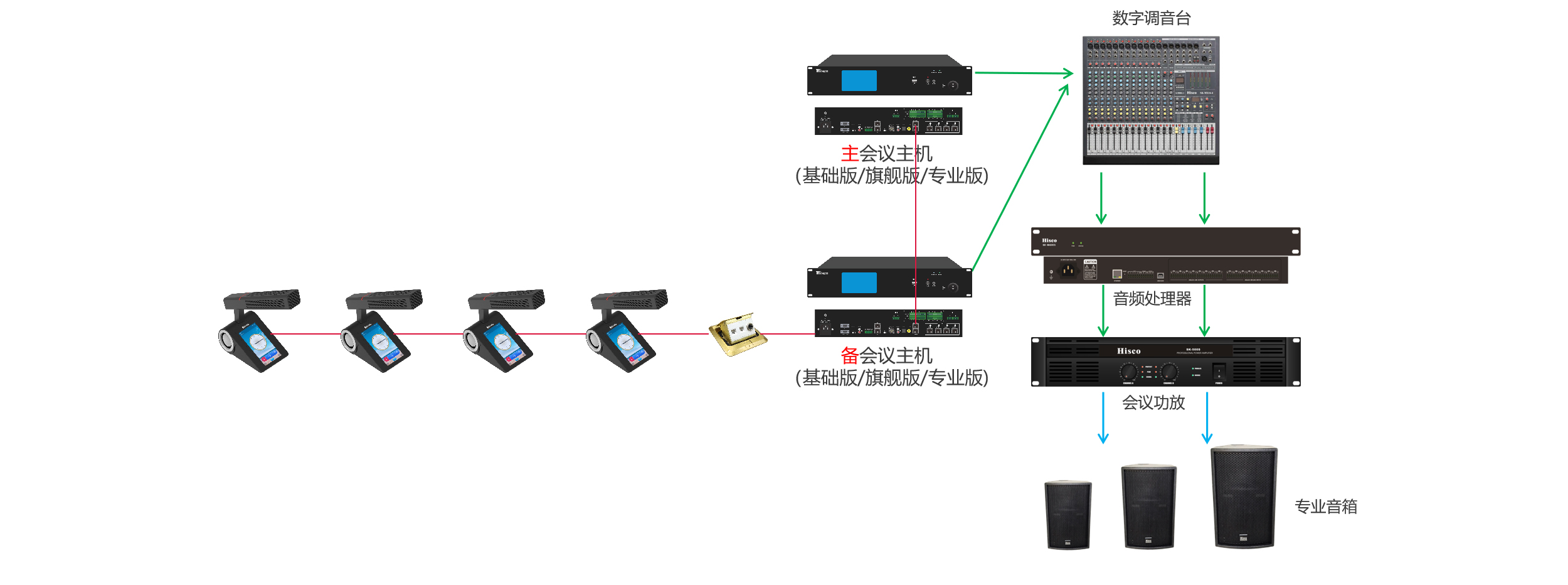 6.与中控对接      7.Dante传输                         8.同声传译      9.本地扩音       10.双机热备份